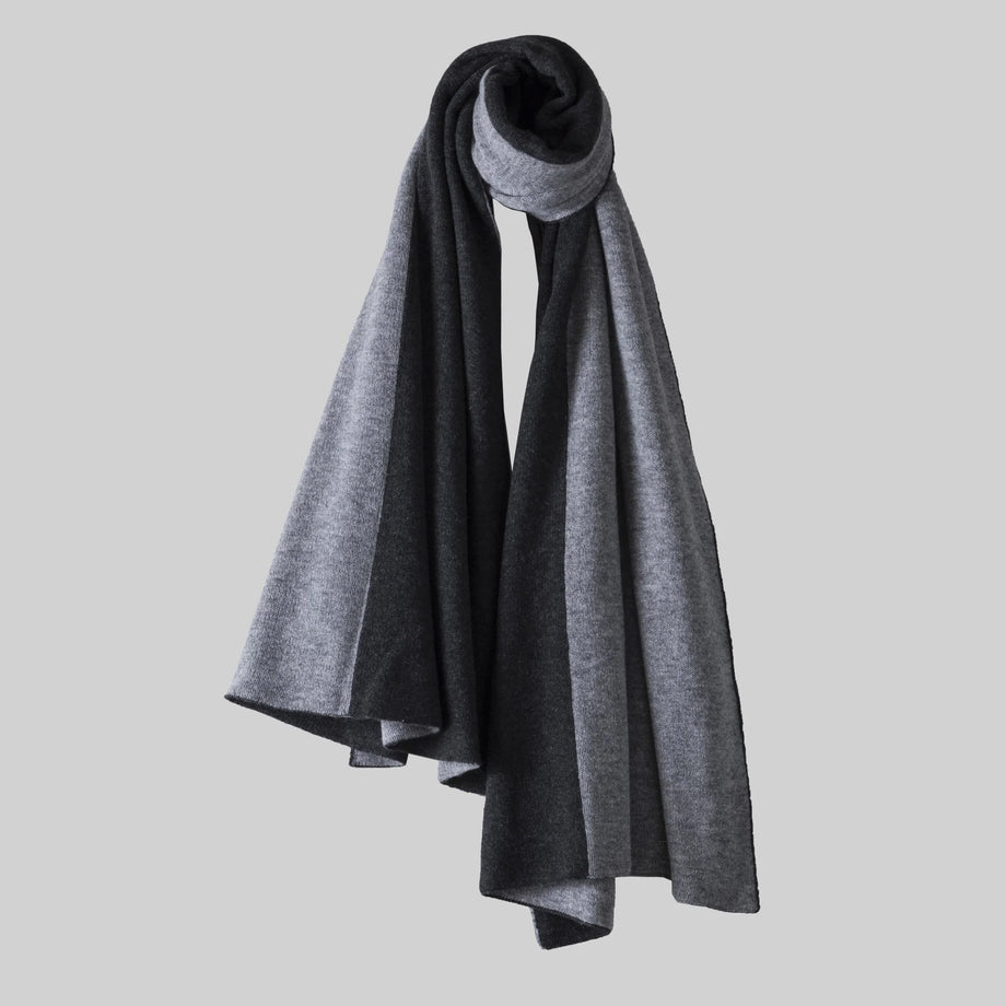 MARIELA double panel knitted cashmere shawls come in soft earth tones. Luxurious and warm, these elegant shawls reflect the highest quality of Mongolian cashmere. Hand stitched for a refined finish.
