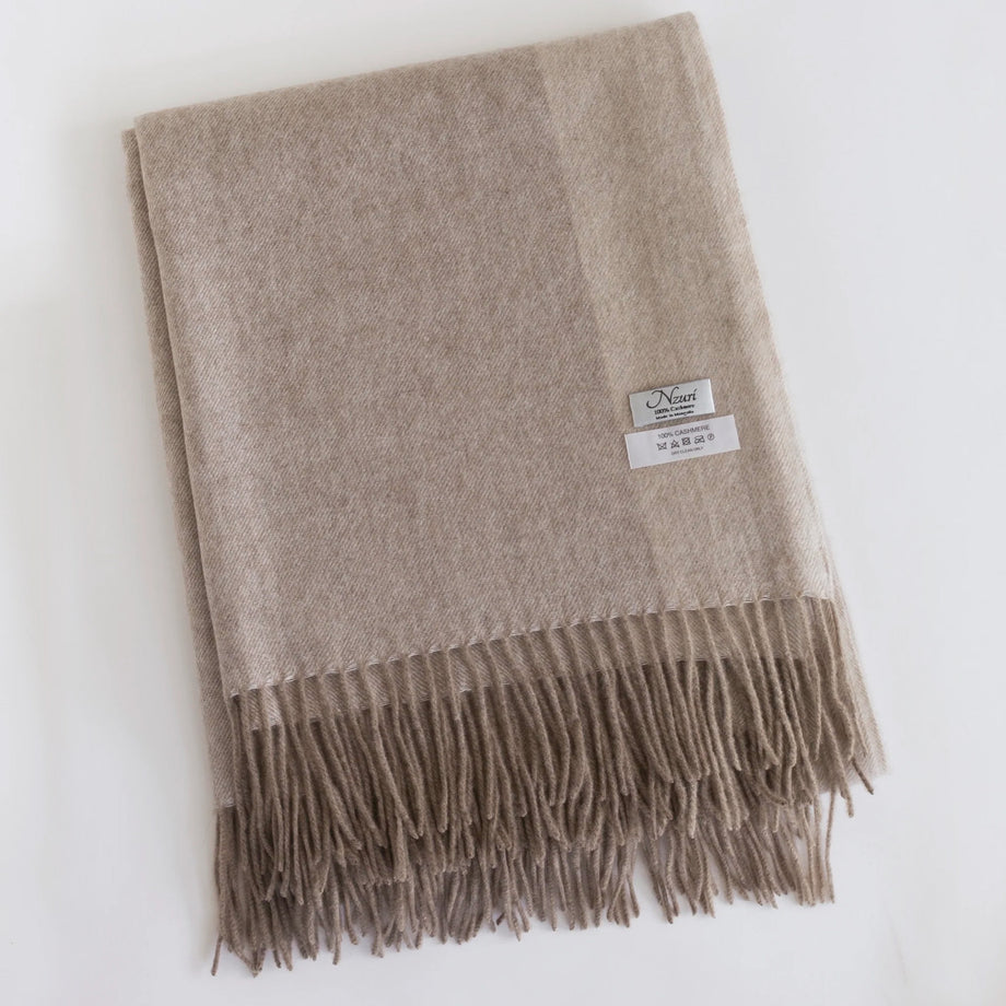 BIARRITZ cashmere throws are woven and featured in soft natural colors and earth tones. Hand-finished fringes. Our designs are elegant, timeless and reflect the highest standards of Mongolian artisans.