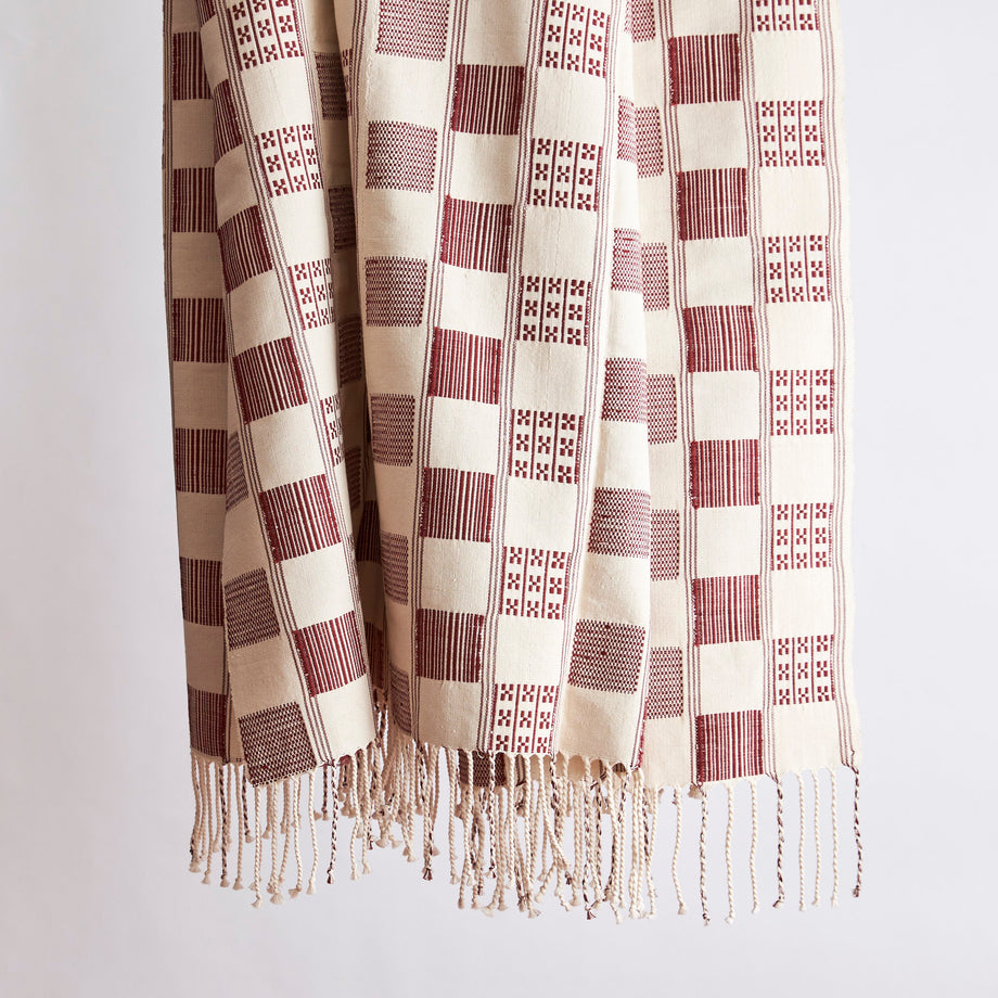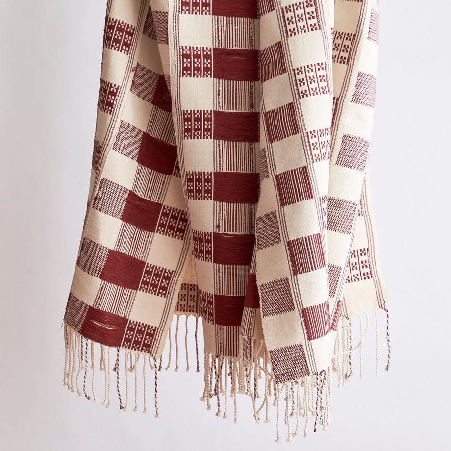 ABUJA features a classic motif weaving with rich, warm and versatile colors. Strip woven on a traditional narrow loom and features superior weaving with exquisite precision. The textile strips are joined by hand-stitching to create a refined finish.