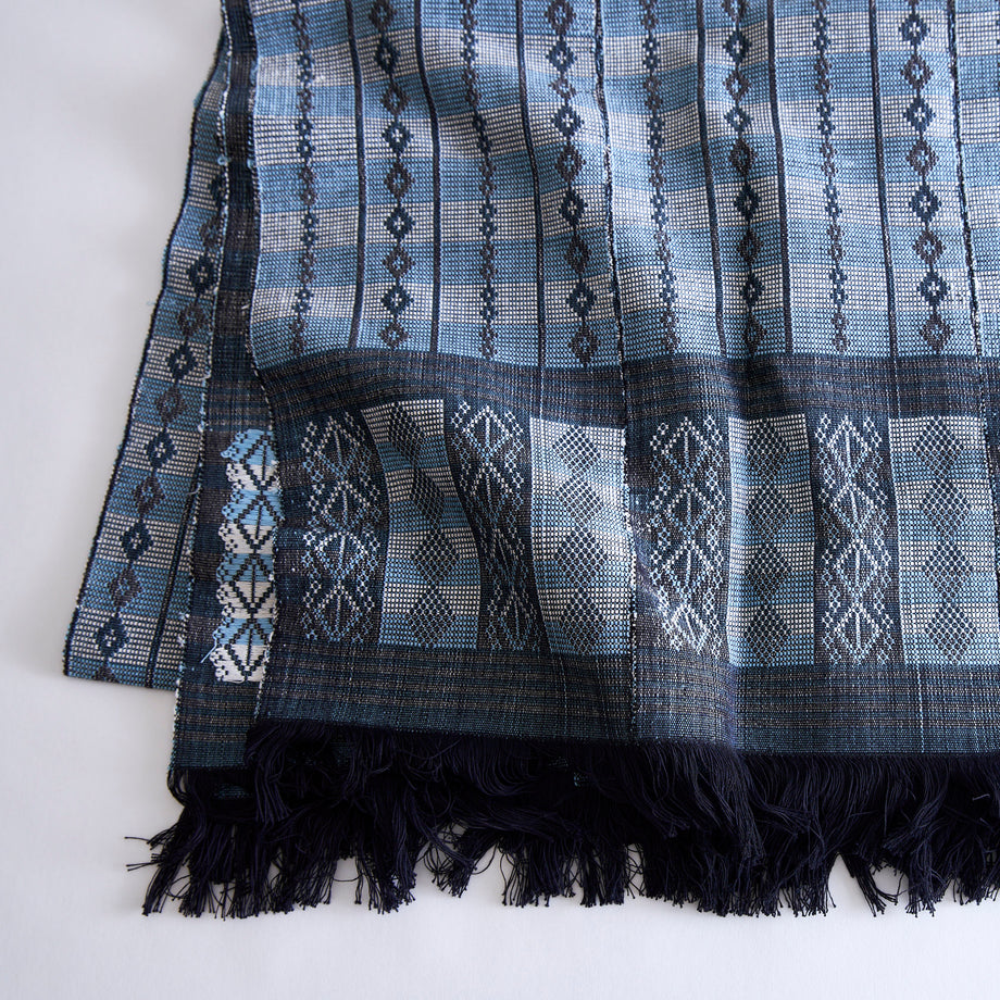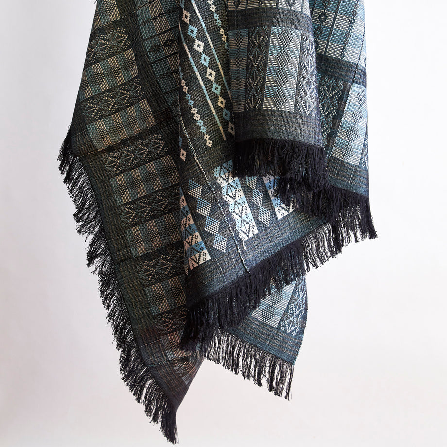 BAMAKO has a versatile geometric design and features a melange of soft blues with a touch of grey. It is strip woven on a traditional narrow loom and features superior weaving with exquisite precision. The textile panels are joined by hand-stitching to create a refined finish. A true masterpiece.