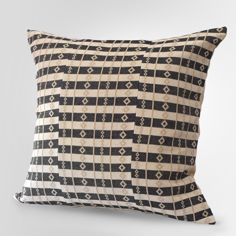 BAMAKO has a versatile geometric design and features soft color tones. Each pillow comes with a premium 10% goose down and 90% goose feather insert made in the USA.