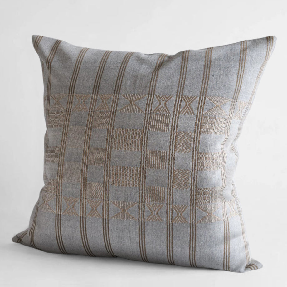 MINNA's depth and complex design showcases superior weaving technique with exceptional detail. A new interpretation of a beautiful vintage strip weave textile from Cote d'Ivoire, this versatile design fits effortlessly into any home decor. Each pillow comes with a premium 10% goose down and 90% goose feather insert made in the USA.