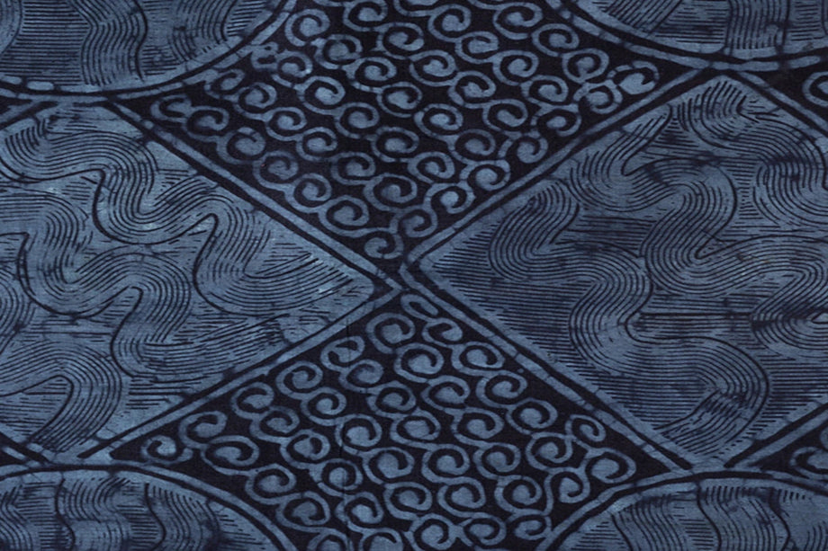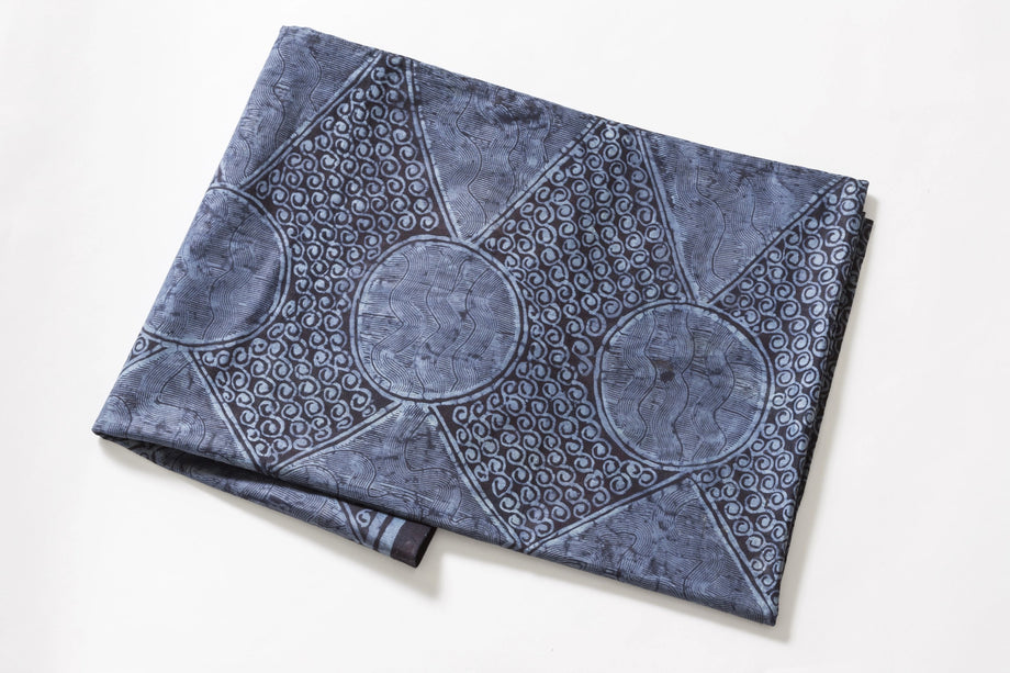 Adire Eleko is a style of Nigerian indigo textiles that is painstakingly hand painted with complex symbols. They are made with resistance-dye techniques using the finished hand-painted cotton cloth that is dipped in natural indigo dyes. The design detail and the rich indigo color found in this older textile is rarely replicated in modern designs. Clearly a wonderful piece