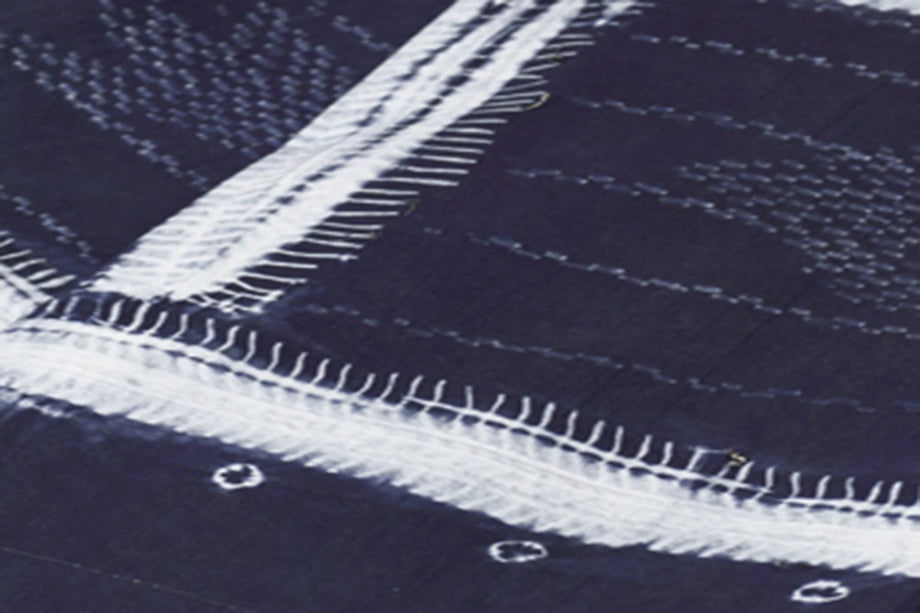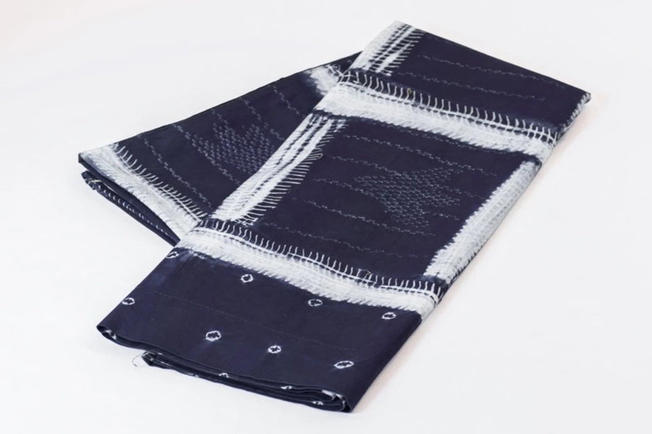 Adire Eleko is a style of Nigerian indigo textiles crafted with complex designs of symbolic patterns. It is made with resistance-dye techniques using hand-painted cotton cloth that is then dipped in natural indigo dyes. The detail in the designs and the richness of the indigo in older textiles is rarely found in modern designs. This textile, a true work of art, is highlighted by an iconic signature of the artisan.